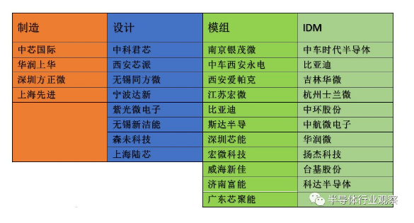 IGBT是事关国家经济发展的基础性产品,如此重要的IGBT,长期以来我国却不得不面对依t进口的尴尬局面,市场主要被英飞凌、三菱、富士电机为首的国际巨头垄断。自2005年开始,大量海外IGBT人才纷纷归国投入国产IGBT芯片和模块产业的发展,尤其是以美国国际整流器公司(IR)回国人员最多。从IR归国主要从事芯片开发的专家有斯达半导汤艺博士、达新半导体陈智勇博士、陆芯科技张杰博士等,以上几家公司都已成为以自产IGBT芯片为主的产品公司。另外IR归国从事模块开发的专家还有银茂微电子庄伟东博士。中科院微电子所较早涉足IGBT行业,主要由无锡中科君芯承担IGBT研发工作中科君芯的研发团队先后有微电子所、IR、日本电装、成电等技术团队的加入。斯达半导作为国内IGBT行业的领军企业,成立于2005年,于2020年2月4日在上交所主板成功上市。公司自主研发设计的IGBT芯片和快恢复二极管芯片是公司的核心竞争力之一。据IHSMarkit报告数据显示,在2018年度IGBT模块供应商全球市场份额排名中,斯达半导排名第8位,在中国企业中排名第1位,成为世界排名前十中唯一一家中国企2。其中斯达半导自主研发的第二代芯片(国际第六代芯片FS-Trench)已实现量产,成功打破了国外企业常年对IGBT芯片的垄断。成立于2013年的宁波达新,主要从事IGBT、MOSFET、FRD等功率半导体芯片与器件的设计、制造和销售。公司在8寸及6寸晶圆制造平台成功开发600V-3300V IGBT芯片产品,芯片电流等级涵盖10A~200A。采用自主IGBT芯片,达新推出了系列化的满足工业应用、消费电子、新能源的IGBT模块,模块电压涵盖600V~1700V,电流等级涵盖10A ~ 800A。上海陆芯电子科技聚焦于功率半导体(IGBT、SJMOS & SiC)的设计和应用,包括芯片、单管和模块。具有以下优势:通过优化耐压终端环,实现IGBT高阻断电压,有效减少芯片面积,达到工业级和汽车级可靠性标准;通过控制少子寿命,优化饱和压降和开关速度;实现安全操作区(SOA)和短路电流安全操作区域SCSOA性能最优;改善IGBT有源区元胞设计可靠性,抑制IGBT的闩锁效应;调节背面减薄、注入、退火、背金等工艺;实现60um~180um晶圆厚度的大规模量产。南京银茂微电子(SilverMicro)成立于2007年,专注于工业和其他应用的功率IGBT和MOSFET模块产品的设计和制造。通过采用现代化的设备来处理和表征高达3.3kV的电源模块,南京银茂微已经建立了先进的电源模块制造能力,还能够执行电源模块鉴定测试。产品已广泛用于工业逆变器,;接机,UPS,电源和新能源应用。江苏中科君芯科技有限公司是一家专注于IGBT、FRD等新型电力电子芯片研发的中外合资高科技企业,成立于2011年底。君芯科技是国内率先开发出沟槽栅场截止型(Trench FS)技术并真G实现量产的企业。公司推出的IGBT芯片、单管和模块产品从600V至6500V,覆盖了目前主要电压段及电流段,已批量应用于感应加热、逆变焊机、工业变频、新能源等领域。君芯科技独创的DCS技术将应用于最新的汽车级IGBT芯片中。随着行业景气度逐渐好转和政策的推动,亦有不少新进入者抢夺市场。据集邦咨询分析,目前市场新入者主要有三类,一是向IGBT等高端产品扩展业务的功率半导体企业,如扬杰科技、华微电子等;二是出于为满足自身需求及出于供应链安全考虑向上游涉足的,如中车时代和比;迪等;三是看好市场而进场的新公司,如瑞能半导体、广东芯聚能以及富能半导体等。在IGBT方面扬杰科技于2018年3月控股了一条位于宜兴的6英寸晶圆线,目前该生产线已经量产IGBT芯片,主要应用于电磁炉等小家电领域。另外扬杰科技也在积极推进IGBT新模块产品的研发进程,50A/75A/100A-1200V半桥规格的IGBT开发成o。此外公司也积极规划8英寸线建设,储备8英寸线晶圆和IGBT技术人才。老牌功率半导体器件厂商吉林华微电子于2019年4月,发布配股说明书,拟募投建设 8 英寸生产线项目。此次募投项目的主要产品技术先进,达到了英飞凌、ABB 等厂家的水平。华微电子于2001年上市,为国内功率半导体器件领域首家上市公司。目前已形成IGBT、MOSFET、SCR、SBD、IPM、FRD、BJT等为营销主线的系列产品,产品种类基本覆盖功率半导体器件全部范围。公司的IGBT薄片工艺、Trench工艺、寿命控制和终端设计技术等国内领先,达到国际同行业先进水平。在IDM模式厂商中,中国中车和比亚迪分别依靠高铁和新能源汽车取得了一定的成绩。株洲中车时代半导体有限公司(简称:中车时代半导体)作为中车时代电气股份有限公司下属全资子公司,全面负责公司半导体产业经营。从1964年开始投入功率半导体技术的研发与产业化,2008年战略并购英国丹尼克斯公司,目前已成为国际少数同时掌握大功率晶闸管、IGCT、IGBT及SiC器件及其组件技术的IDM(集成设计制造)模式企业代表,拥有芯片—模块—装置—系统完整产业链。中车时代半导体拥有国内首条、全球第二条8英寸IGBT芯片线,全系列高可靠性IGBT产品已全面解决轨道交通核心器件受制于人的局面,基本解决了特高压输电工程关键器件国产化的问题,并正在解决我国新能源汽车核心器件自主化的问题。比亚迪是在2005年进入IGBT产业,于2009年推出首款车规级IGBT 1.0技术,打破了国际厂商垄断,实现了我国在车用IGBT芯片技术上零的突破。2018年其推出的IGBT 4.0产品在电流输出、综合损耗及温度循环寿命等许多关键指标上超越了英飞凌等主流企业的产品,且产能已达5万片