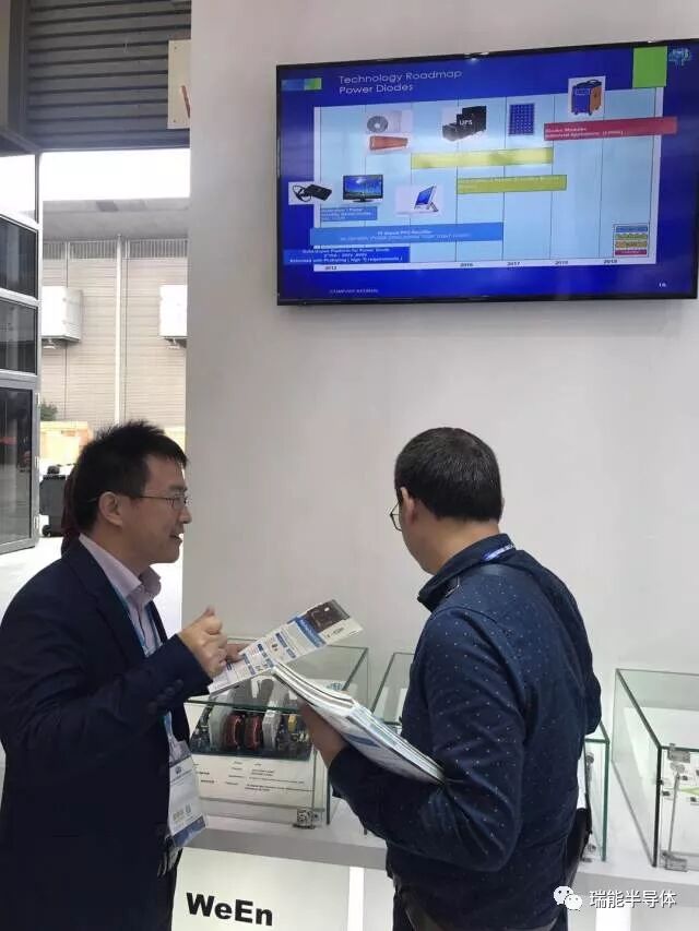 ▼ 《中国电子商情》主编单详茹女士也来到瑞能展台,就瑞能今后市场发展战略,产品研发等方面进行了详尽的讨论。 Mosen先生指出,在“2016年中国半导体功率器件十强企业”中,瑞能名列前五强,瑞能有信心,在新的一年获得更大的突破。